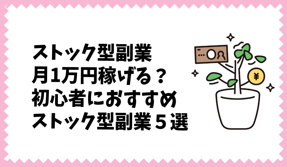 高すぎる目標は挫折を招くから、まずは月1万円目標にしてみてもいいかも!今日は初心者向けに、ストック型副業の種類とか、始め方のポイントを教えるよ!