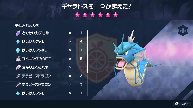 今回はドラゴンテラスタイプのギャラドス★6にそうぐうしたので、ソロチャンレンジします。
