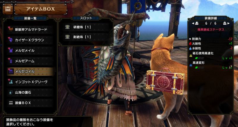 | 腕 | メルゼアーム | 剛刃珠Ⅱ【4】流水珠【1】 |