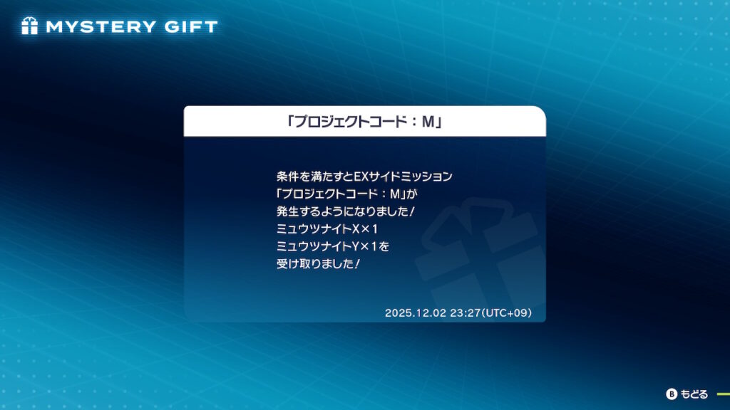 ①ふしぎなおくりもの「プロジェクトコード:M」を受け取る