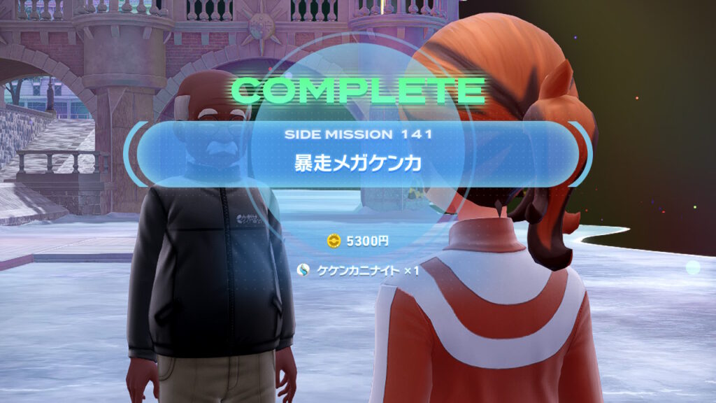 ケンカを止めることが目的のミッションのため、1匹倒した時点でクリアとなります。