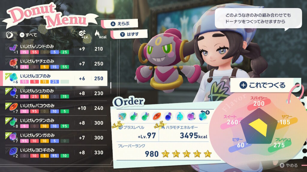 上記のきのみの組み合わせで、フレーバーの上限を満たすことができます!きのみ選びに迷っている方の参考になれば幸いですです!