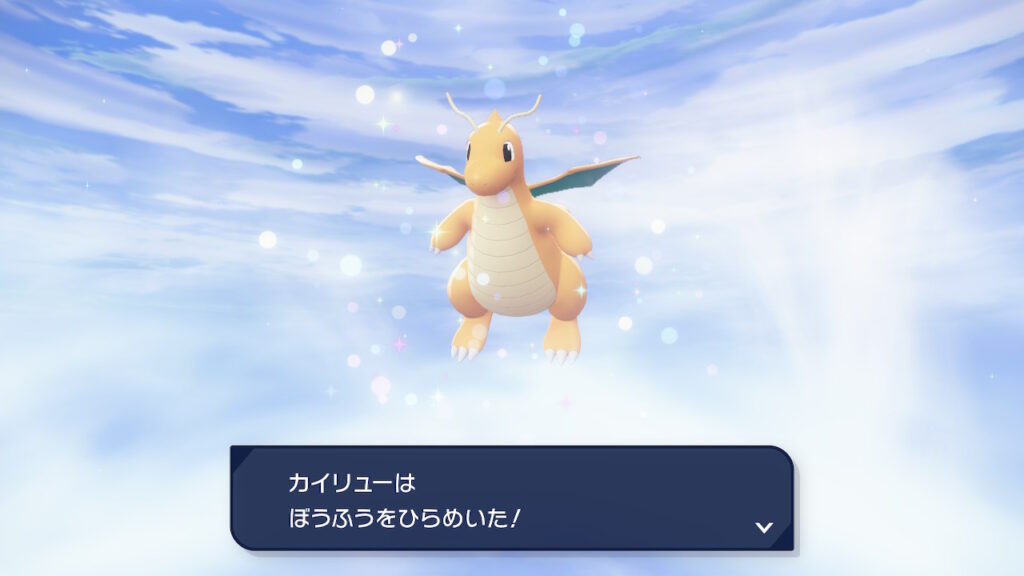 ミニリュウは、レベル30でハクリューに、レベル55でカイリューに進化可能となります。