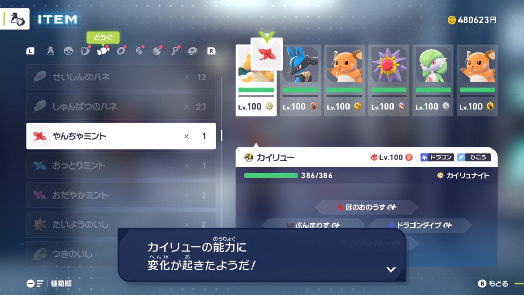 カイリューをけいけんアメやふしぎなアメなどを利用してレベル100にしましょう。