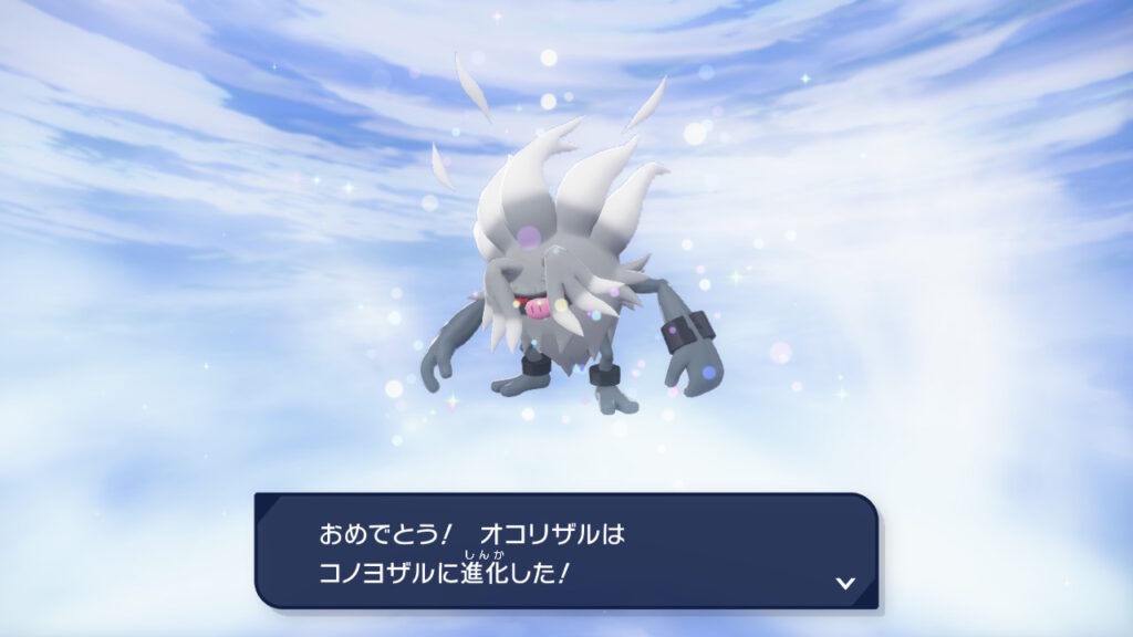 オコリザルがコノヨザルに進化するには、「ふんどのこぶし」を20回使用することで進化可能になります。
