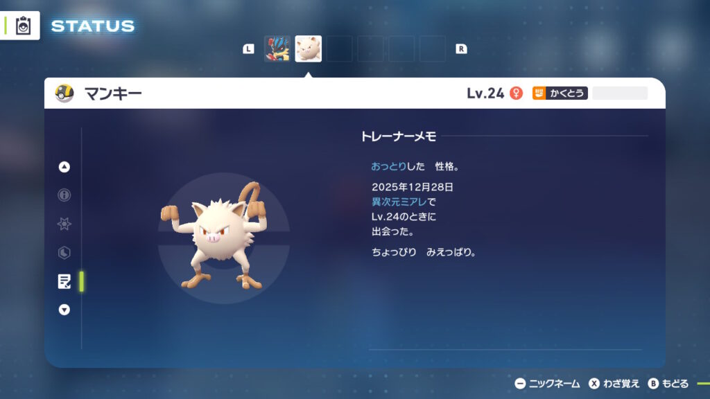 マンキーはタイプ傾向かくとうの異次元ミアレ★1~★3で遭遇することができます。